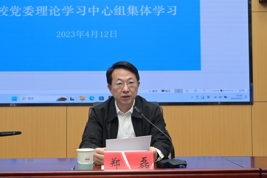 鄭磊在主持學(xué)習(xí)時(shí)指出,黨的二十大、全國(guó)兩會(huì)圍繞以高質(zhì)量發(fā)展推進(jìn)中國(guó)式現(xiàn)代化進(jìn)行了深入闡述和系統(tǒng)部署,全校各單位、各級(jí)領(lǐng)導(dǎo)干部要以黨中央的部署安排為根本指引,結(jié)合崗位實(shí)際,圍繞加快建設(shè)高質(zhì)量教育體系、服務(wù)經(jīng)濟(jì)社會(huì)高質(zhì)量發(fā)展這一重大課題,持續(xù)深入探討、研究貫徹落實(shí)。要堅(jiān)決把擁護(hù)“兩個(gè)確立”、做到“兩個(gè)維護(hù)”作為最高政治原則和根本政治規(guī)矩,自覺(jué)在思想上政治上行動(dòng)上同以習(xí)近平同志為核心的黨中央保持高度一致。要持續(xù)強(qiáng)化理論武裝,牢牢把握習(xí)近平新時(shí)代中國(guó)特色社會(huì)主義思想的世界觀和方法論以及貫穿于其中的立場(chǎng)觀點(diǎn)方法,繼續(xù)在全面學(xué)習(xí)、全面把握、全面落實(shí)上下功夫,引導(dǎo)廣大黨員干部、師生員工自覺(jué)做新思想的學(xué)習(xí)者、信仰者和踐行者。要大興調(diào)查研究之風(fēng),各級(jí)領(lǐng)導(dǎo)干部要緊緊圍繞黨中央提出的12個(gè)方面內(nèi)容,聚焦立德樹(shù)人根本任務(wù),聚焦一流學(xué)科建設(shè)發(fā)展,聚焦改革發(fā)展關(guān)鍵環(huán)節(jié),聚焦全面從嚴(yán)治黨共性問(wèn)題等,奔著問(wèn)題去調(diào)查,追著問(wèn)題做研究,盯著問(wèn)題提實(shí)策,不斷提高學(xué)??茖W(xué)決策能力和領(lǐng)導(dǎo)管理水平。