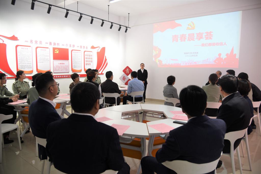 國旗下的思政課結束后,國旗護衛隊黨支部組織黨員代表開展了“我們都是收信人”青春晨享薈活動。國旗護衛隊成員苗俊豪同學在國旗下講述“國旗誕生”微黨課,黨支部書記王冉帶領支部成員學習習近平總書記給中國農業大學科技小院的學生回信,黨員代表分享了學習感悟。