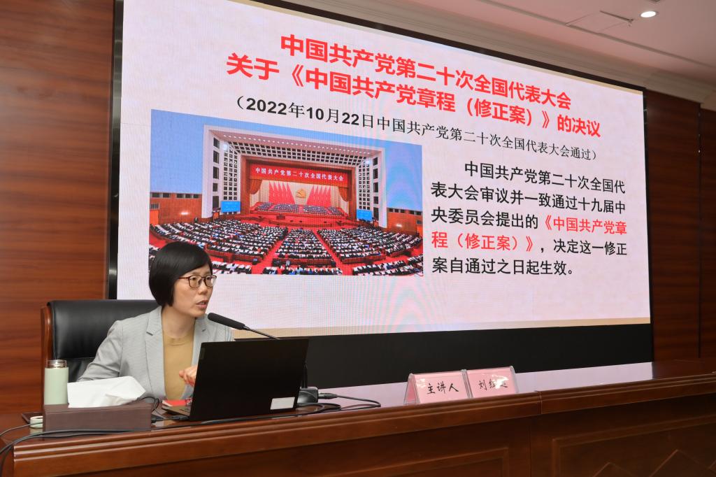 在六安市委黨校獨山分校報告廳,安徽省委黨校(安徽行政學院)黨史教研部主任、省直機關宣講團宣講專家劉紅運應邀作題為《學習黨的二十大新修訂的黨章》的輔導報告。報告圍繞黨章修改的必要性和原則、黨章修改的主要內容、怎樣學習貫徹好黨章三個層面,對黨章進行了全面系統、重點突出的解讀。報告指出,黨章是黨歷史發展的權威記載、是指引前進方向的一面旗幟、是規范管黨治國的根本大法,學習貫徹黨章要與學習貫徹習近平總書記關于黨章的重要論述相結合、要與學習貫徹黨內其他法規相結合、要與學習貫徹黨的二十大精神相結合。整場報告站位高遠、內容豐富、條理清晰、論述精辟,既有理論的高度,又有鮮活的事例,將歷史與現實、理論與實際緊密結合,對于讀書班成員深入學習貫徹黨章、扎實開展主題教育,具有重要指導意義。