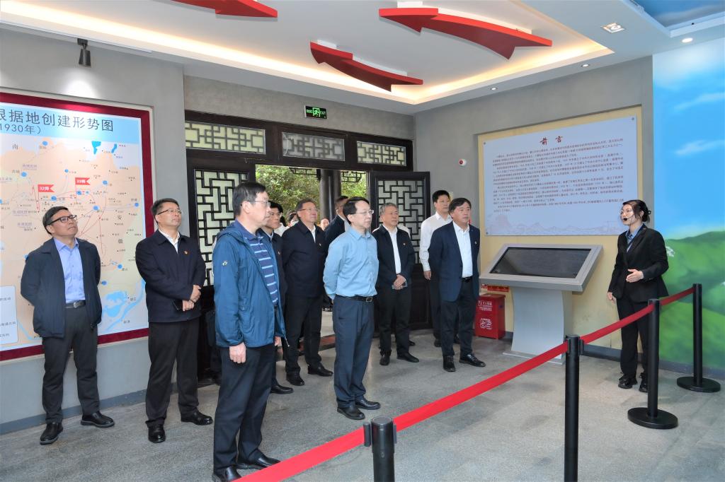 當天下午,讀書班赴六安市獨山鎮蘇維埃城開展實地研學。在六霍起義紀念館,一張張照片、一件件實物展現了獨山革命先烈的豐功偉績,再現了獨山暴動、六霍起義和蘇區春秋的壯麗畫卷。通過實地參觀紅軍街六安縣蘇維埃俱樂部、獨山暴動指揮部、六安縣保衛局等獨山革命舊址,大家了解了獨山鎮“一鎮十六將,獨秀大別山”的光榮歷史,領略了小鎮古色、紅色相映成輝的獨特魅力。隨后,讀書班成員懷著崇敬的心情來到六霍起義紀念塔前,向革命先烈敬獻花籃,肅立默哀,深切表達對革命先烈的崇高敬仰和無限懷念。面對鮮紅的黨旗,全體黨員重溫入黨誓詞,用錚錚誓言彰顯使命初心,宣示著對黨忠誠的政治信念。