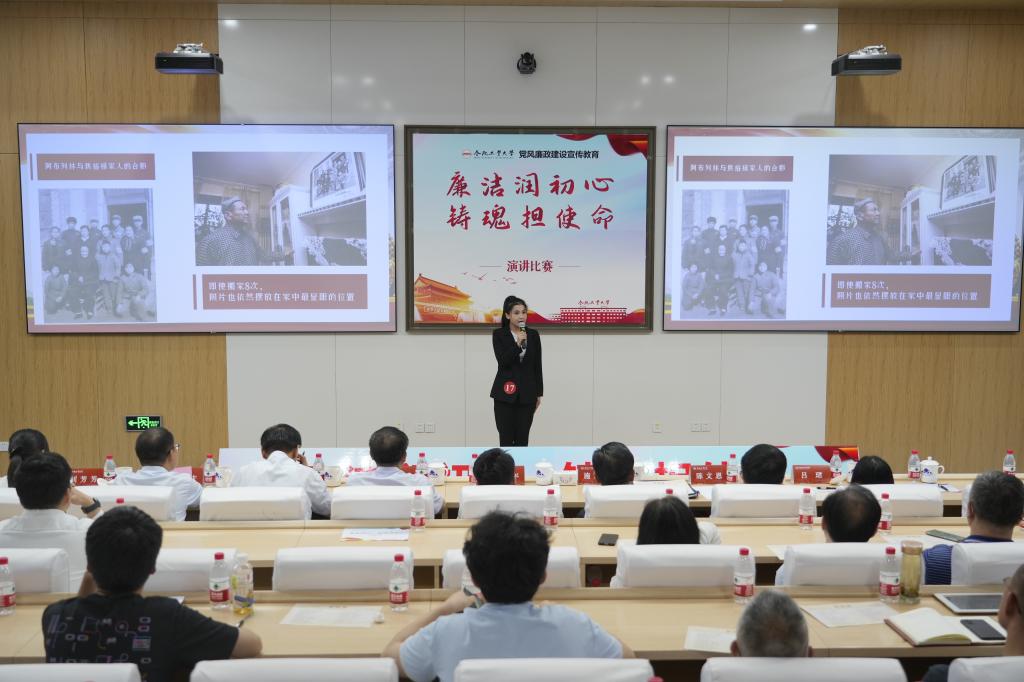 自2023年4月以來,學(xué)校紀委組織開展了“廉潔潤初心,鑄魂擔(dān)使命”黨風(fēng)廉政教育宣傳月系列活動,各級二級單位黨組織、紀檢組織高度重視,廣大師生積極參與。作為系列活動重頭戲之一的本次演講比賽,在學(xué)校各級黨組織、紀檢機構(gòu)的認真組織下,共計收到學(xué)校27家單位報送的42件優(yōu)秀作品。決賽現(xiàn)場,參賽選手們緊扣主題,結(jié)合實際,旁征博引,表達了自己對廉潔的解讀與感悟,思想積極,立意深刻。選手們的精彩表現(xiàn)讓觀眾接受了深刻的廉潔文化教育,贏得了陣陣熱烈的掌聲。
