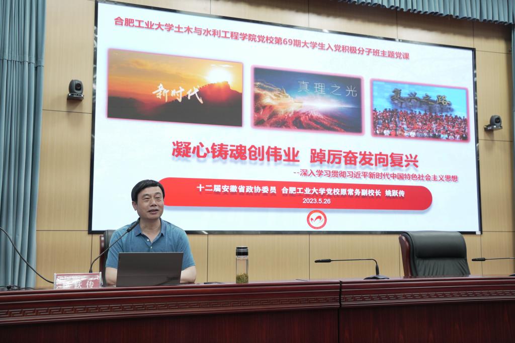 5月26日,土木與水利工程學院在屯溪路校區學術會議中心二樓報告廳開展學習貫徹習近平新時代中國特色社會主義思想主題黨課,學院黨校班主任、第69期大學生入黨積極分子班180余人參加學習。