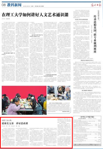 “以支部為依托,以課程為載體,以課堂為主渠道,學(xué)校把教師黨支部建設(shè)成為推進課程思政的戰(zhàn)斗堡壘,實現(xiàn)專業(yè)課教學(xué)價值性和知識性相統(tǒng)一,潛移默化地影響學(xué)生的思想、行為和價值選擇,達到潤物無聲的育人效果。”合肥工業(yè)大學(xué)黨委書記余其俊說。