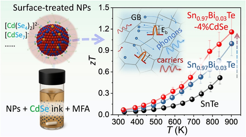 圖2.硫醇-胺配合物前驅(qū)體化學(xué)與界面工程協(xié)同優(yōu)化高效SnTe熱電材料